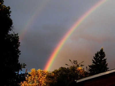 Double Rainbow over Torbay eve of June 29th Passion flower at the front door...