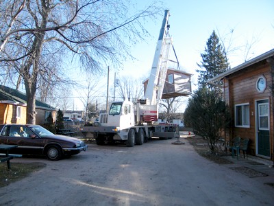 # 10 also had to go, and went to South River, here being craned onto a low-boy trailer