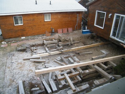 ... Removing the footings ... just before the major snow and cold arrived early December ... unfortunately the weather closed in so quickly that it was not possible to fill in the holes and do some landscaping, all this work will now have to wait until next May and June