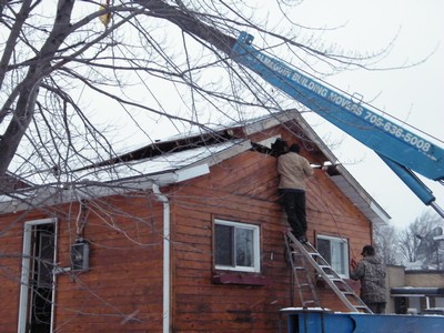 The Company to do the actual move of the Cottage is out of Kearney. Also a Family operation, they assembled a 'trailer' under and behind the cottage, then pulled the building onto the frame... a rather slick operation to be sure