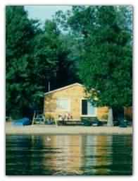 View toward Lake Nipissing with original cottages (now replaced with #1 & #2) by the beach. (1960's photo). These cottages were replaced first in 1978 when #1 was built, then in 1987 #2 was constructed.